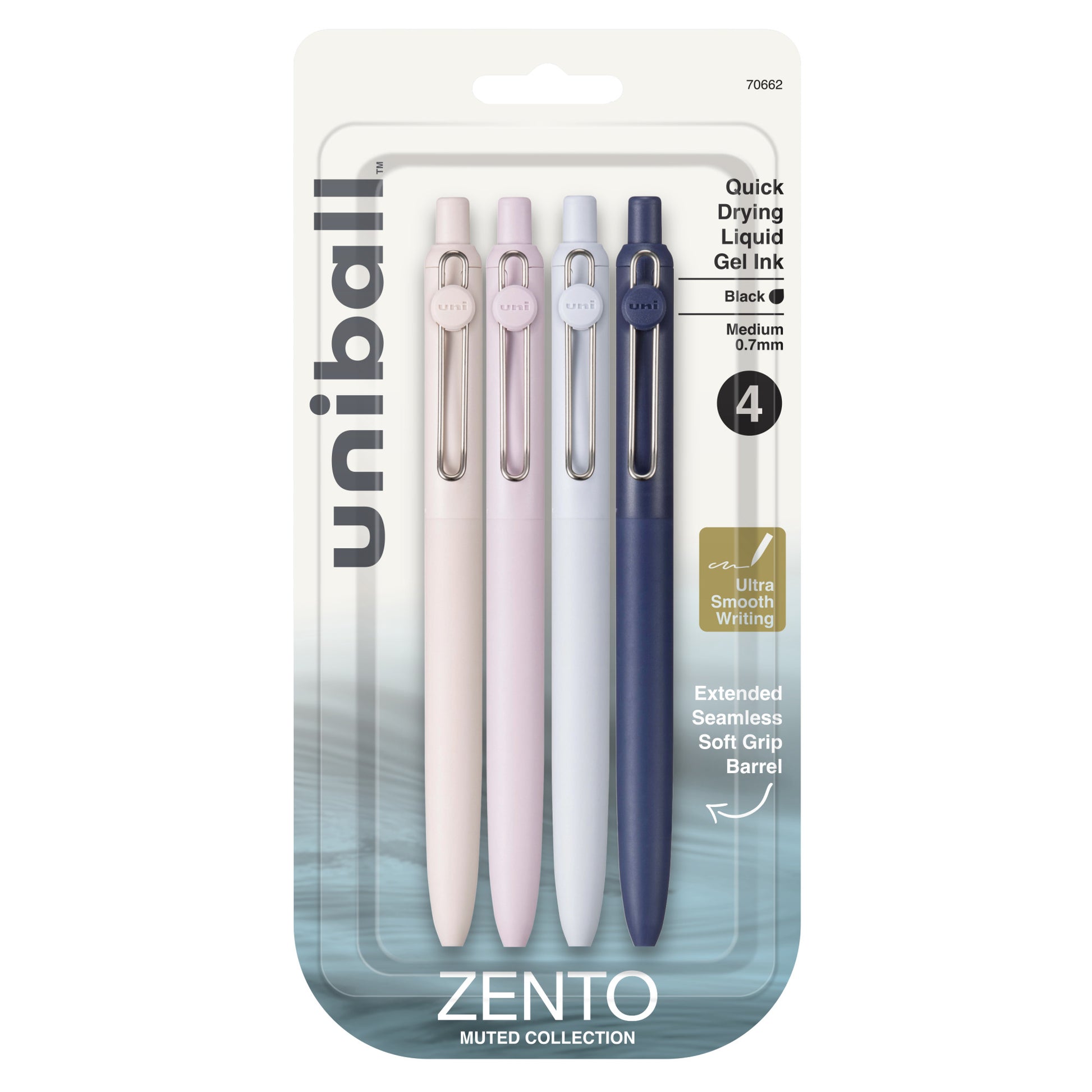 - Pack includes 4 uniball™ Zento Retractable Gel Pens with a medium point (0.7mm tip) featuring Black Ink