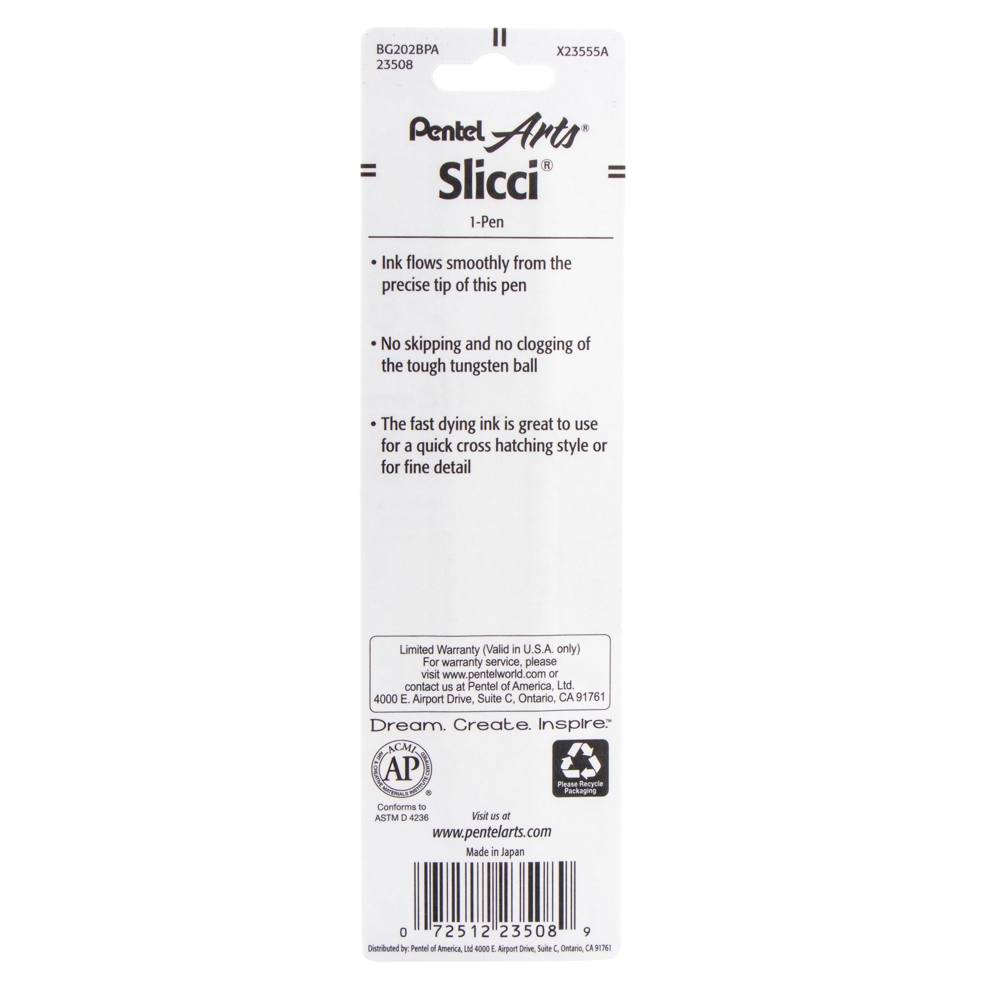 Pentel Arts Slicci (0.25mm) Extra Fine Gel Pen Black Ink 1-Pk (BG202BPA)