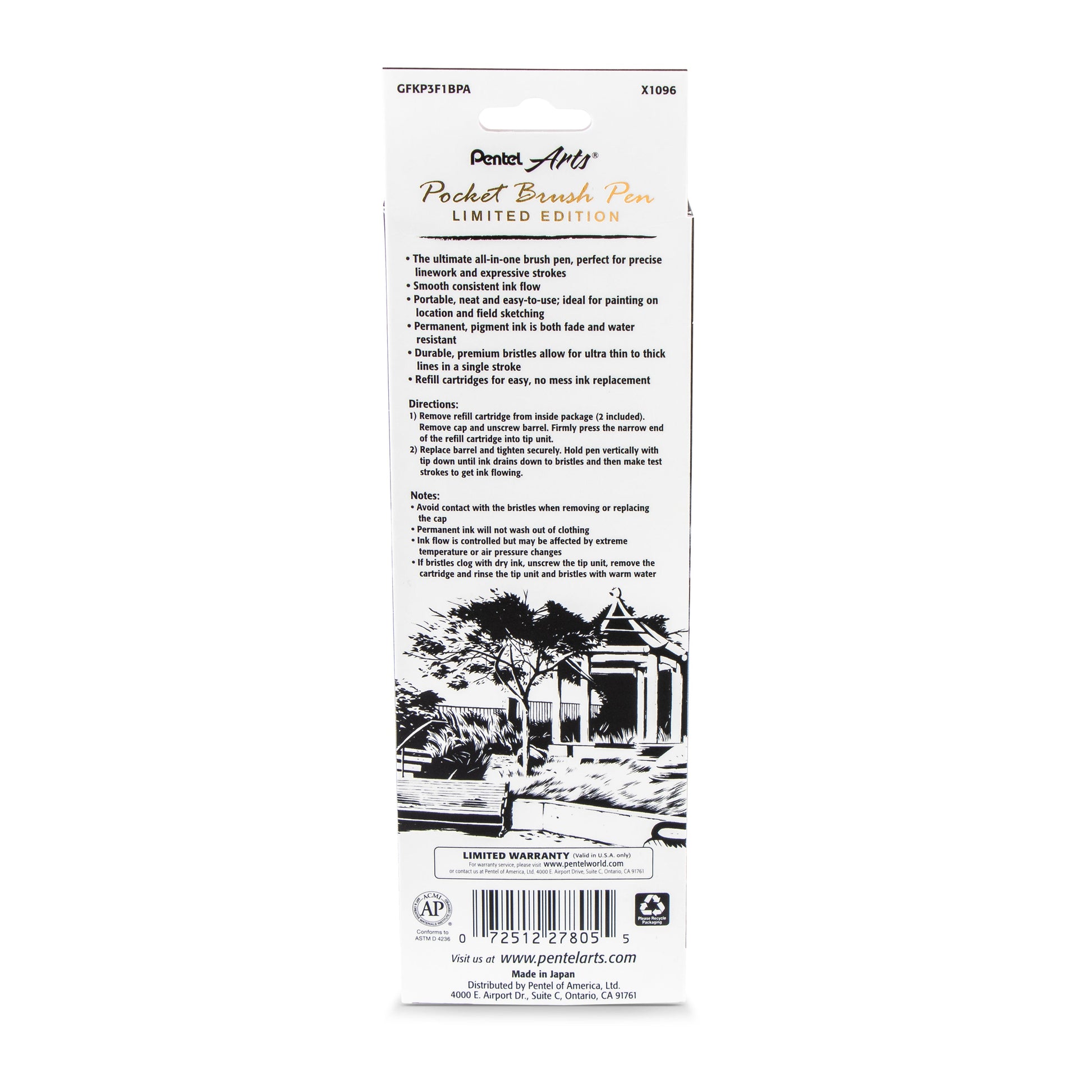 Pentel Arts Limited Edition Pocket Brush, Marble Wrap (GFKP3F1BPA)