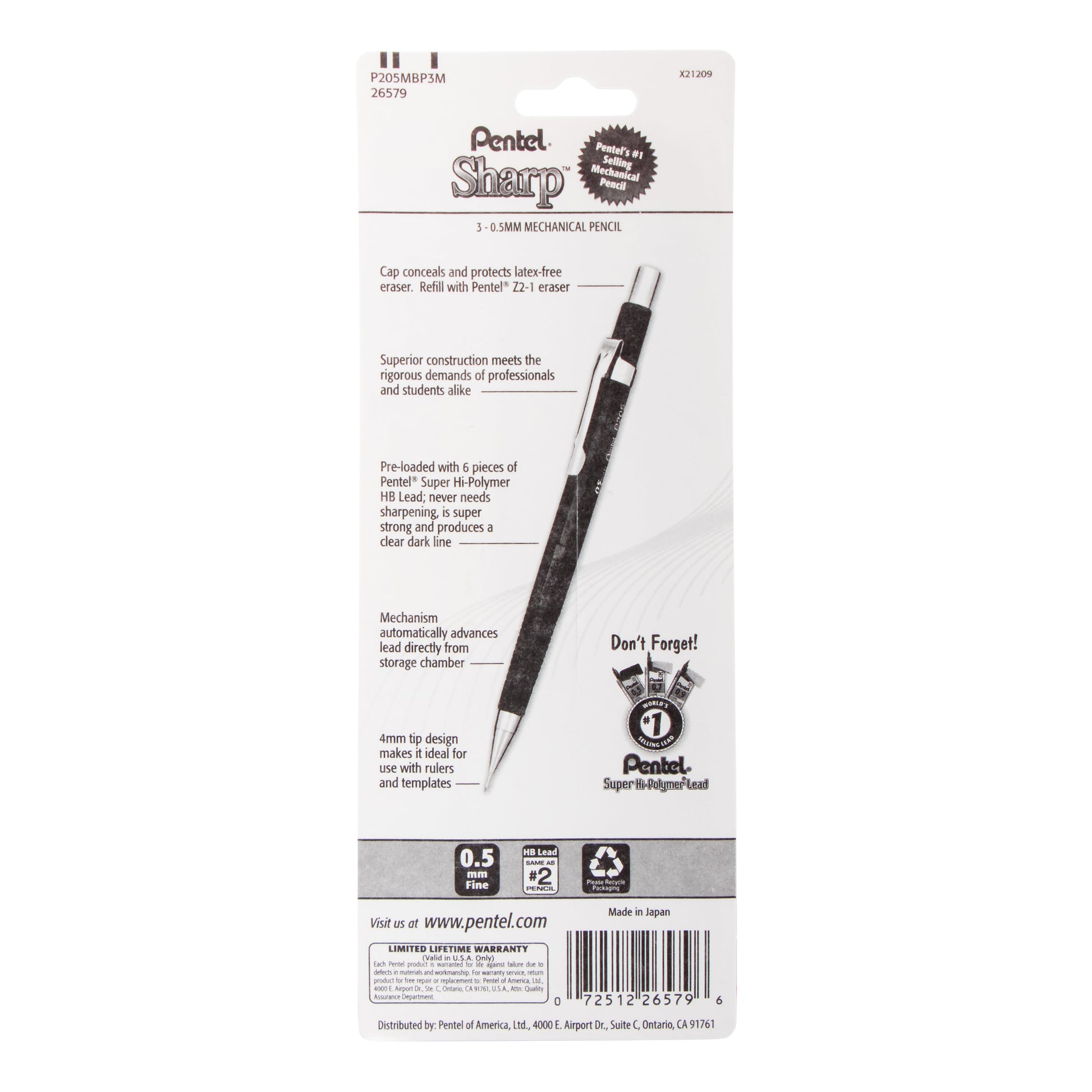 The Sharp Mechanical pencil is Pentel's #1 selling mechanical pencil. Superior construction meets the rigorous demands of professionals and students alike. The 4mm tip length makes it ideal for use with rulers and templates. Each Sharp mechanical pencil is pre-loaded with Pentel® Super Hi-Polymer® HB lead; never needs sharpening, is super strong and produces a clear dark line. Available in .5mm, .7mm and .9mm lead sizes and backed by Pentel's industry-leading Limited Lifetime Warranty.