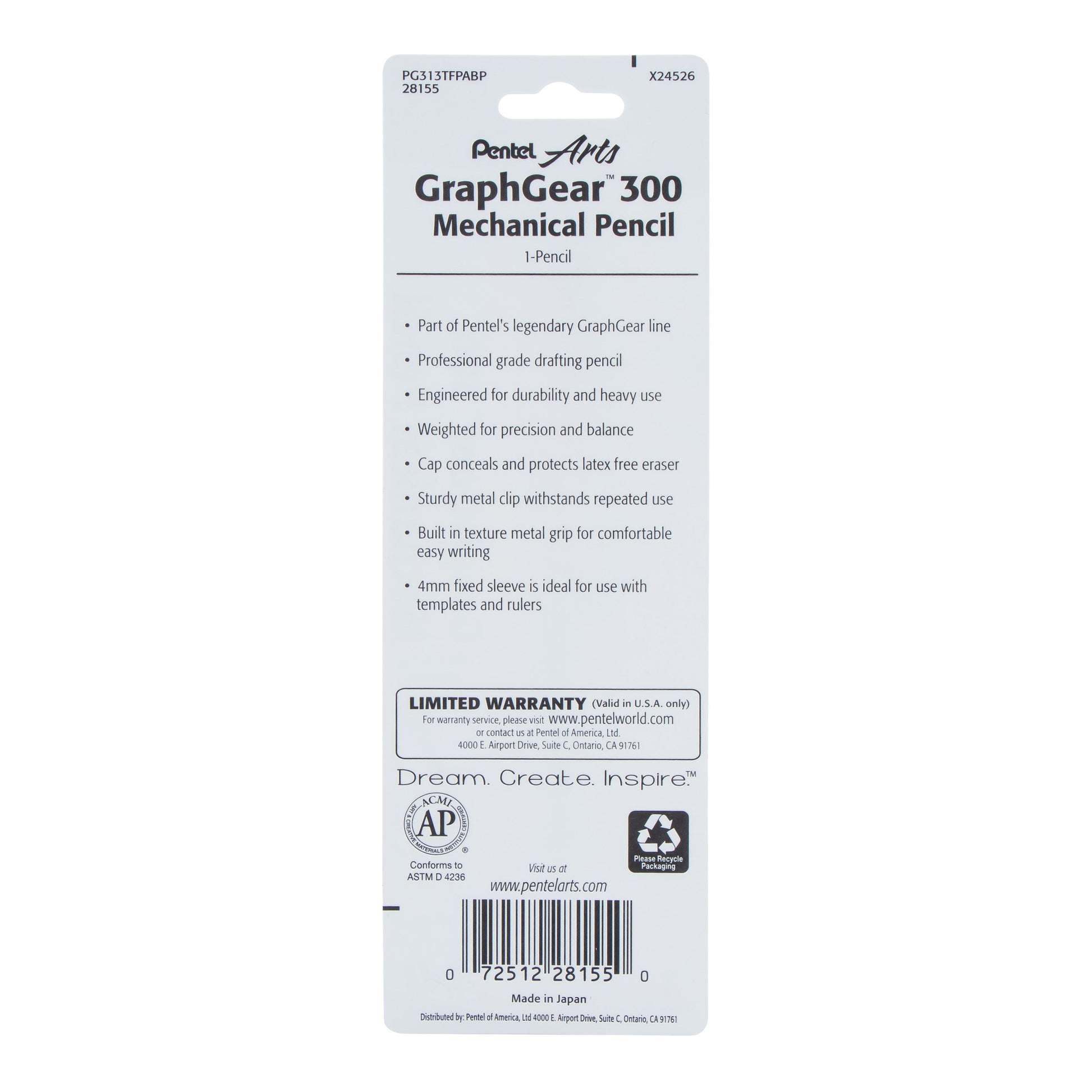 Pentel Arts GraphGear 300 Mechanical Pencil, (0.3mm) Extra-fine line, 1- Pack, Orange Barrel (PG313TFPABP)