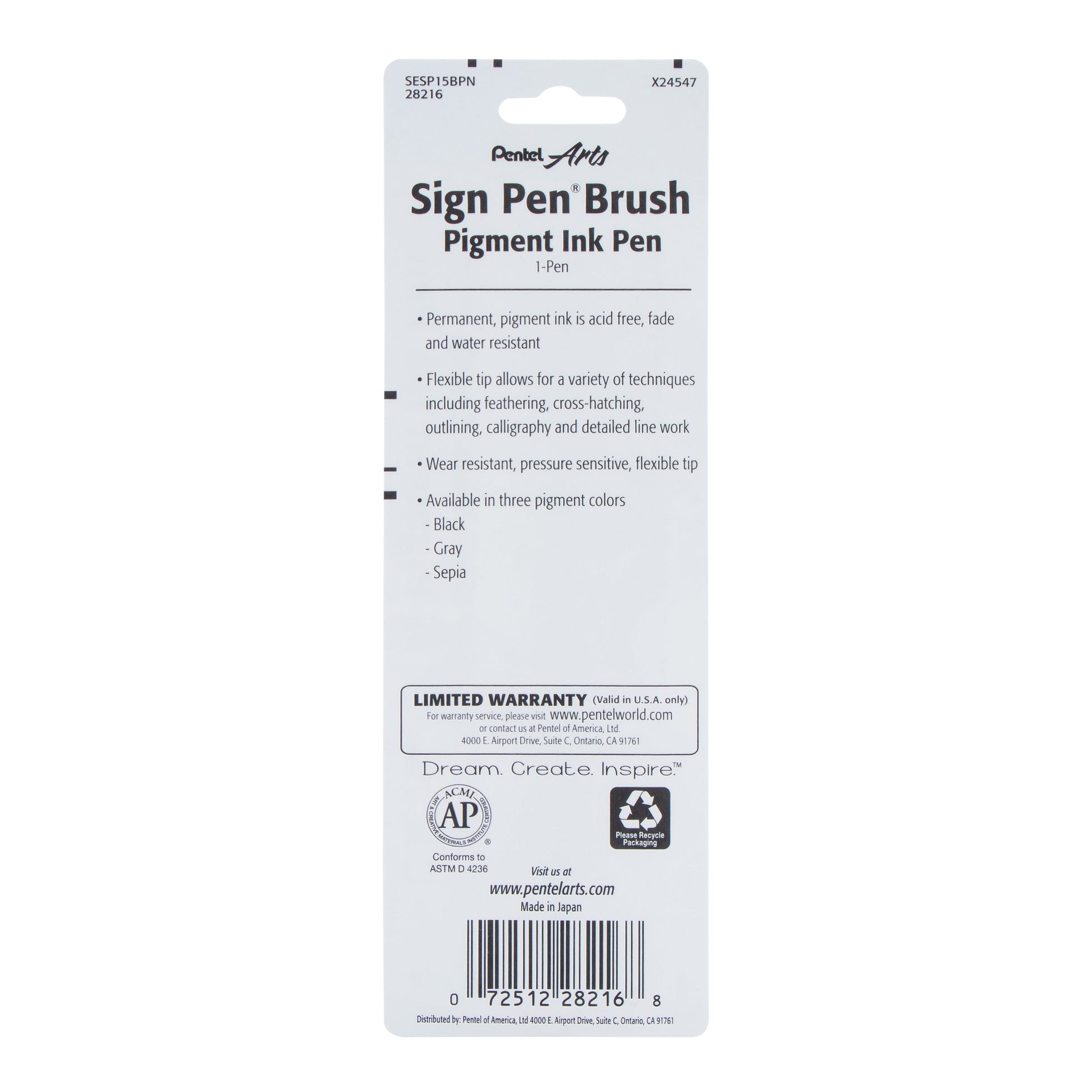 Pentel Arts Sign Pen Brush, Gray Pigment Ink, 1-PK (SESP15BPN)